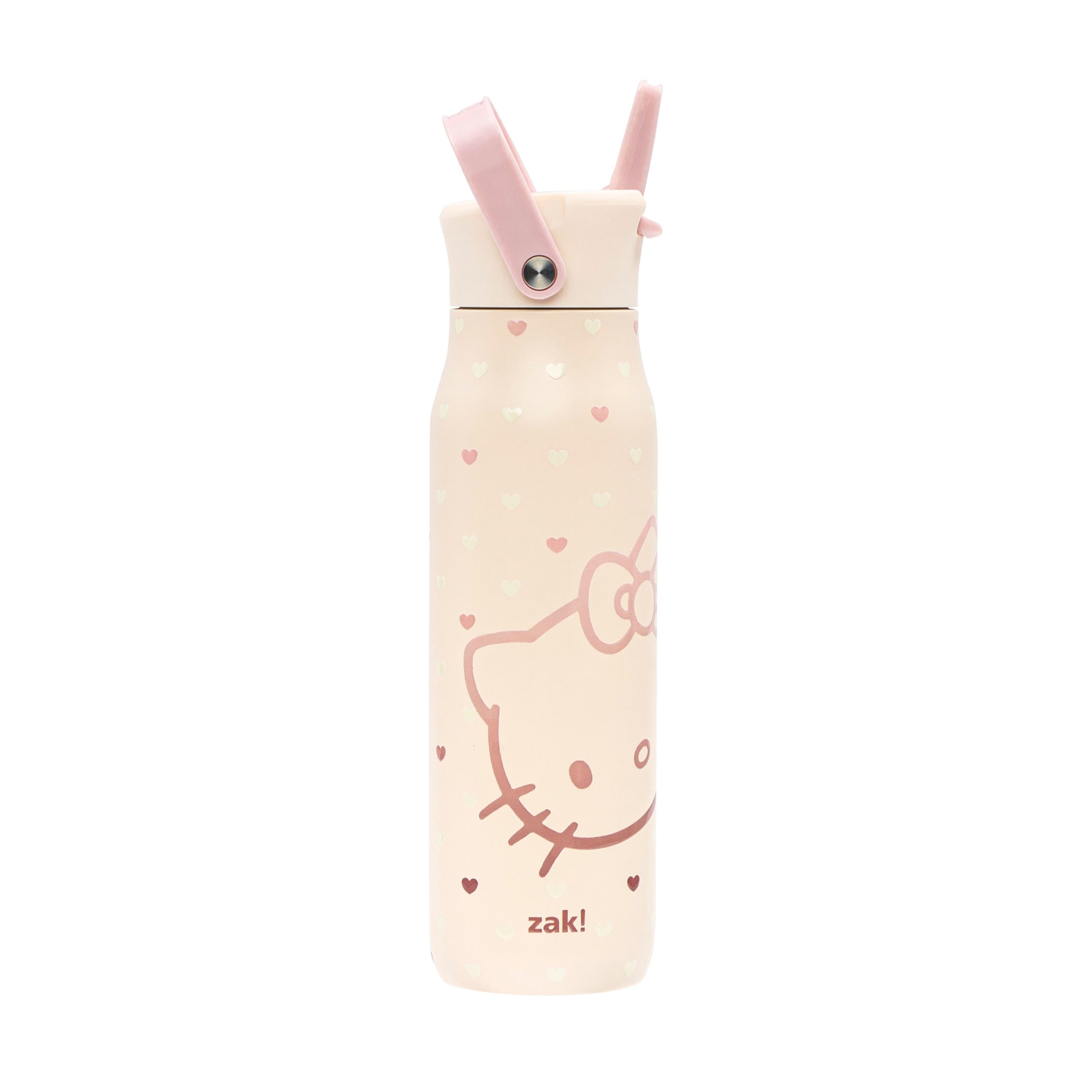 Sturdy and reliable. the Harmony Hello Kitty water bottle from zak! is made of stainless steel and built for any adventure. with easy cleanup in the top rack of the dishwasher at the end of the day. But. we didn’t just leave it at that. The 32-ounce Harmony bottle is packed with practical features like a robust carrying handle. a flip-up drinking spout to keep sipping simple. and vacuum insulation that’ll keep your water cold for hours. And since hydration doesn’t stop when you’re on the go. the sleek. unique design lets you carry your water around and look good doing it. Gettin’ your sips in with a smile on your face??it doesn’t get much better than that!