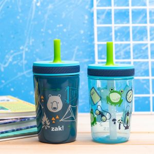 Let’s keep it simple: these tumblers don’t leak. The silicone sipper spout design has a built-in valve that stops water from flowing when no one is drinking: it’s easy for children to quench their thirst. but won’t make a mess if the tumbler is tipped over. It’s the perfect choice for active kids. or young ones just graduating from sippy cups who aren’t ready for an open-topped tumbler yet. Two tumblers and a bonus sipper are included in the set—the 12-ounce stainless steel tumbler has vacuum insulation. which keeps drinks cold and eliminates water rings from condensation. and the 15-ounce plastic tumbler is lightweight and easy to carry. They’re both durable. reusable. and completely BPA free. and you can even disassemble the lids and spouts for cleaning (these pieces are top-rack dishwasher safe). The plastic tumbler is dishwasher safe as well. though the stainless tumbler should be hand washed to preserve the vacuum seal. and we recommend hand washing both to keep the artwork bold and bright. Don’t put them in the microwave—these tumblers are made for cold drinks and help your kid stay refreshed and hydrated with no leaks or spills!